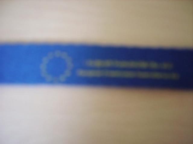 mėlynas raktų pakabukas ant kaklo su užrašu „I support humanitarian aid, European Commission Humanitarian Aid“ ir su europos vėliava