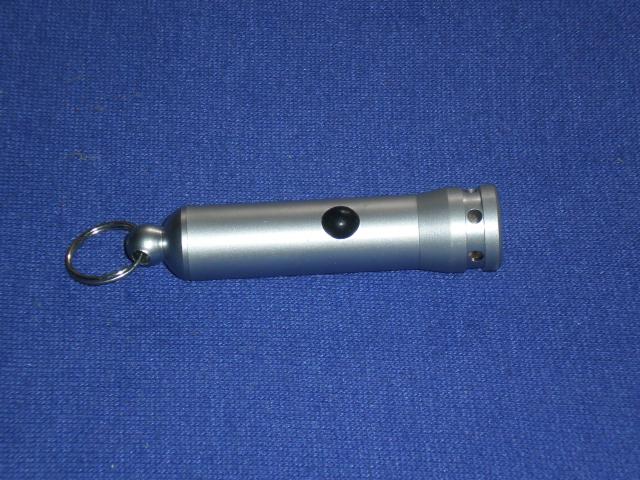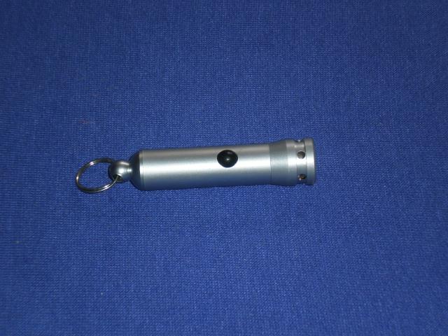 Melsvai neoniskai svieciantis metalinis prozektoriukas. Tinka pasikabinti prie raktu. Reikia tik isideti naujas baterijas:)