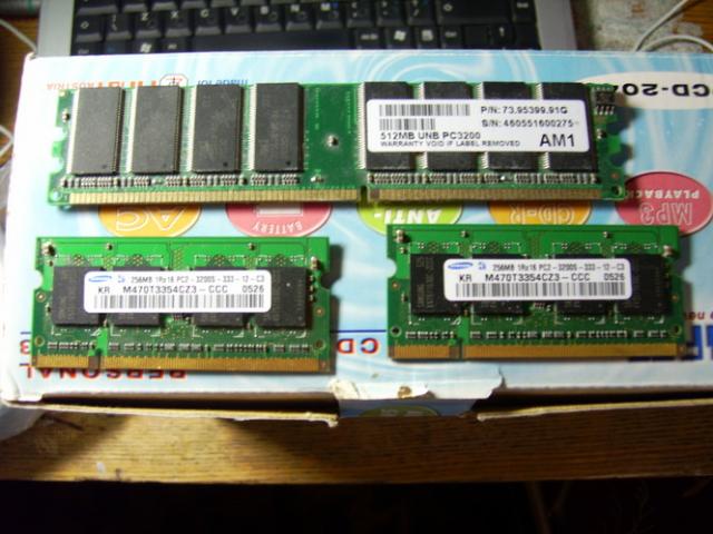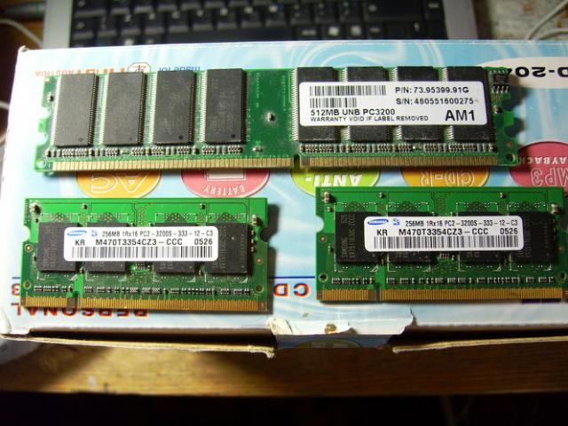 512MB RAM PC 3200 (arba DDR2 arba DIMM) ir nėšiojamojo kompiuterio RAM DDR2 2 po 256MB