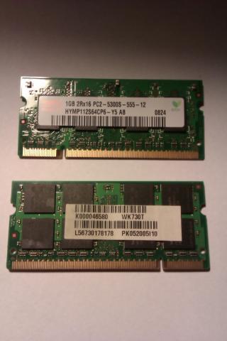 Ram: Hynix 1GB 2Rx16 PC2-5300S-555-12; Perkant po 2 vienetus, ramai po 20 Lt. ; Linkas: http://www.heartlandcomputers.com/products/Hynix-1GB-DDR2-Laptop-Memory-HYMP112S64CP6%252dY5-AB.html ; Vienetai: x3.