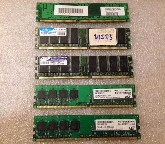 Parduodu visus iš karto. 1. DDR400 (2.5) 256M*8 - 1 vnt. 2. DDR400 (3) 256M*8 - 1 vnt. 3. DDR400 (3) 512MX8 - 1 vnt. 4. APACER 512MB UNB PC2-5300 P/N: 73.G17B8.000 - 2 vnt. Su Jūsų priemoka galiu išsiųsti į bet kurį Lietuvos miestą.