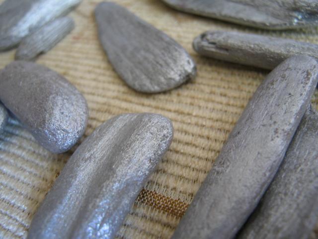 rankdarbiams - dažyti medžio gabalėliai, sidabriniai