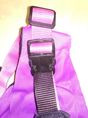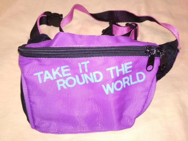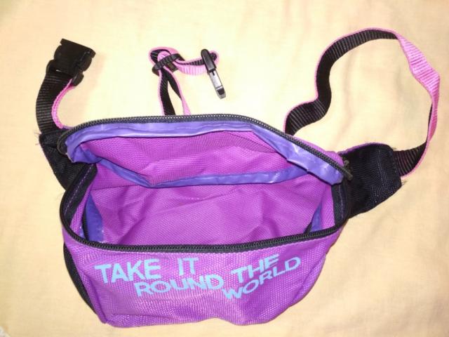Geros būklės nedidelis krepšelis per juosmenį. Vienas bendras skyrelis, užsegamas užtrauktuku. Tašytė užsegama greitu sujungimu, dirželio ilgį galima reguliuoti.