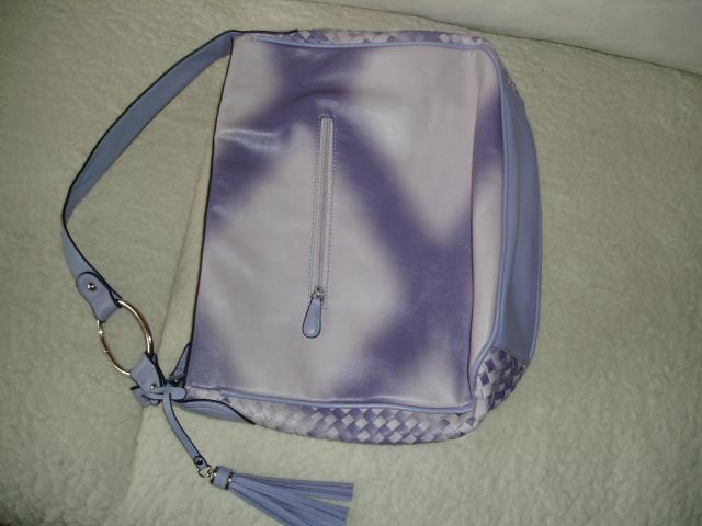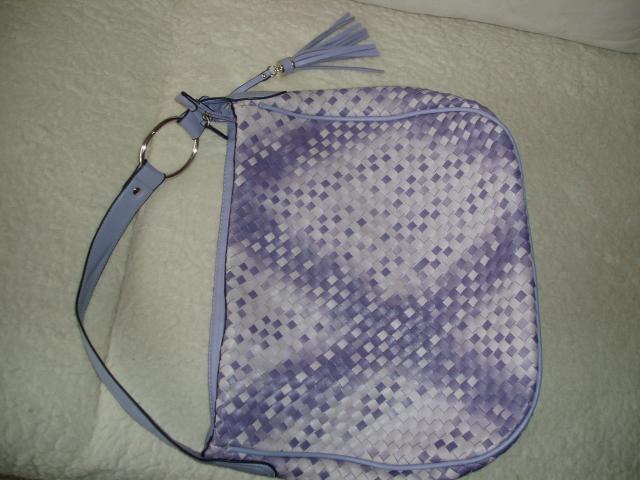 Dirbtinė oda,priekis ir šonai pinti, rankena ir visa rankinė be jokių įtrūkimų,viduje vienas skyrius,3 kišenės,viena jų su užtrauktuku,išorėje viena kišenė su užtrauktuku.Išmatavimai 40 x35 cm.,šonai ir apačia plotis 10cm.Rankenos ilgio užtenka nešioti ant peties
