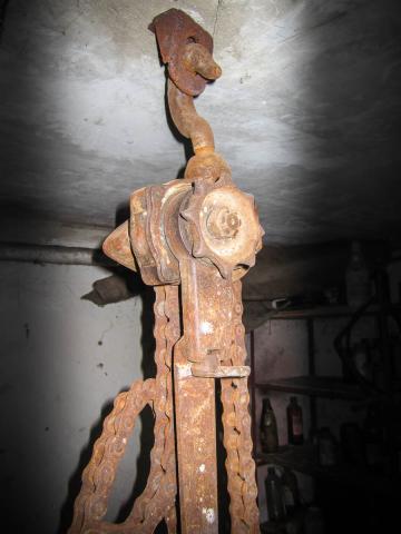 Rankinė kėlimo gervė. Veikianti, bet būtų gerai perrinkti ir sutepti.