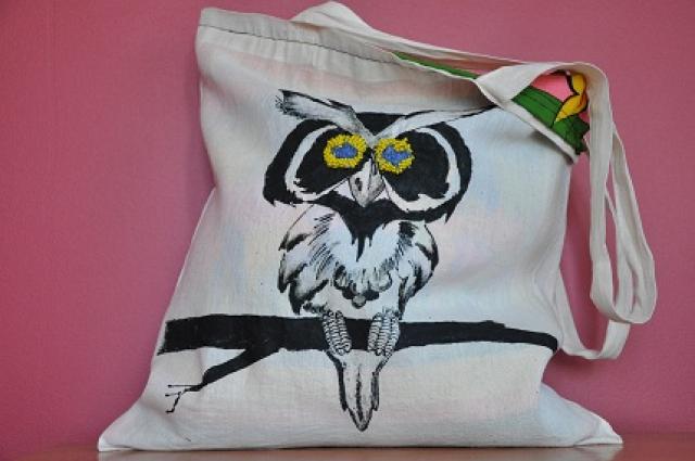Tapyba tekstiliniais dažais, dekoravimas karoliukais. Krepšelis su pamušalu.