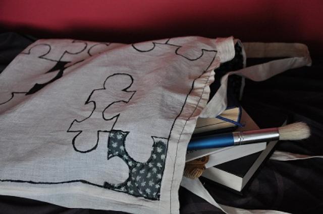 Tapyba tekstiliniais dažais, dekoravimas karoliukais. Krepšelis su pamušalu.