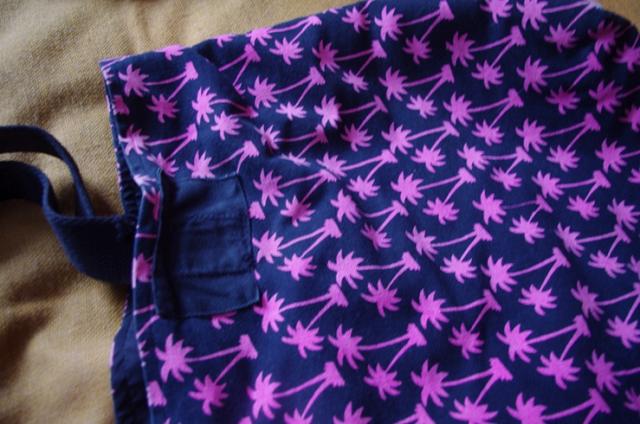 Vasariškas maišas - rankinė. Labai talpi, graži ir madinga. Su rožinių palmių iliustracijom.