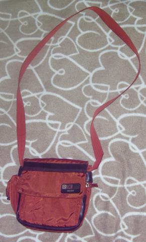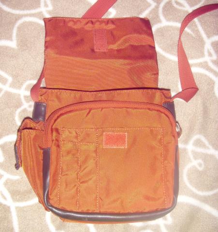 Nauja orandžinė rankinė per petį su odos intarpais. 2 pagrindinių skyrių, šone yra kišenėlė telefonui įsidėti.