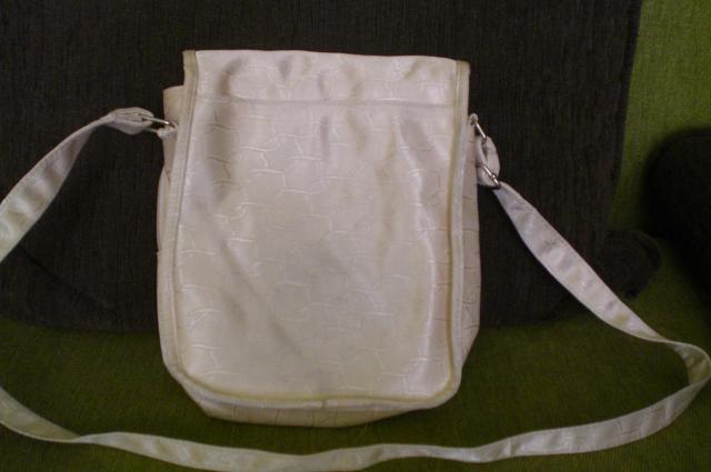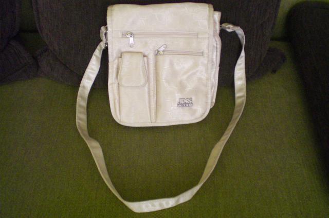Stilinga, graži, talpi tašė per petį. Yra nemažai skyrių: viduje 2 ir išorėje kur matosi nuotraukoje. Išmatavimai: plotis 23 cm. aukštis 26 cm.