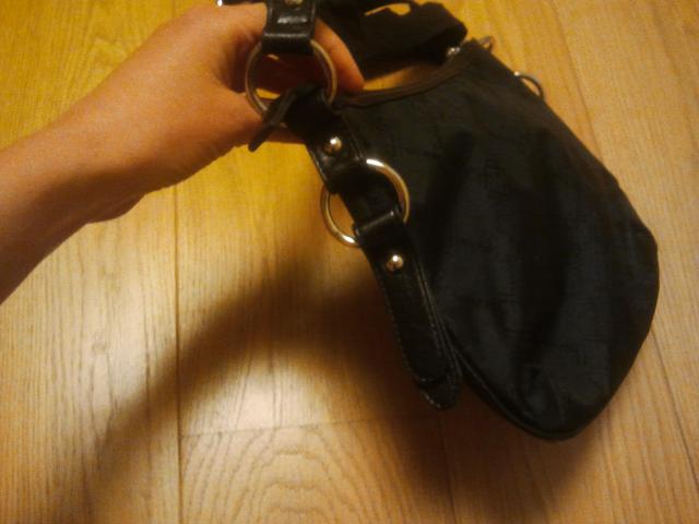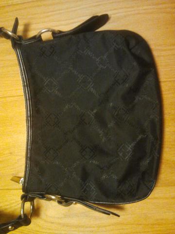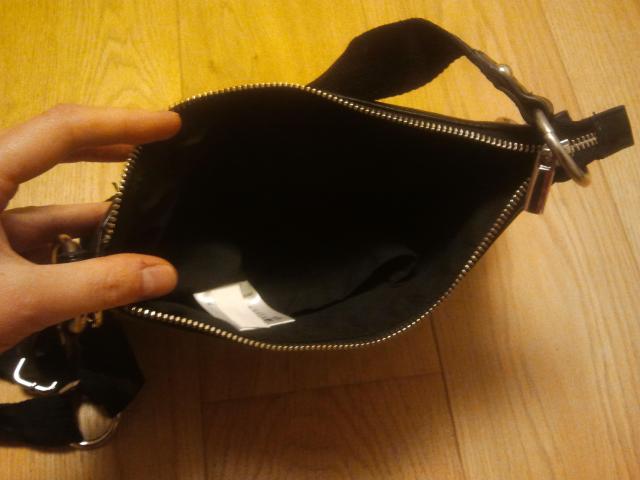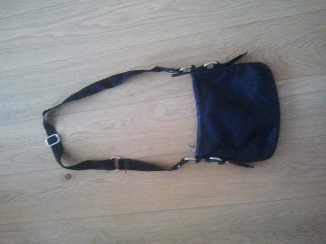 Nedaug nešiota rankinė per petį. Rankena reguliuojama, ne odinė. plotis 26 cm., aukštis 21 cm. Viduje yra kišenėlė su užtrauktuku ir telefonui skirta atvira kišenėlė. Defektų nėra.