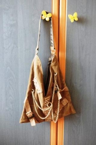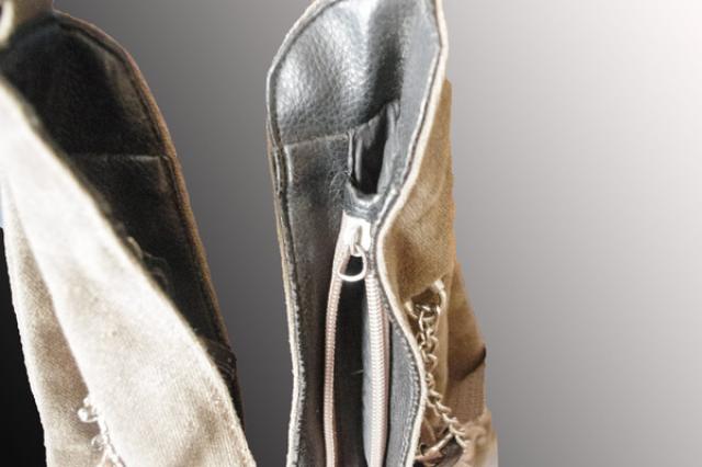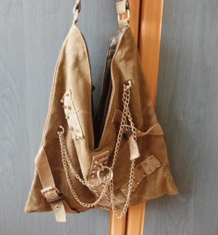 Rankinė su daug grandinėlių. Rankena trumpa. Defektas matosi antroje nuotraukoje (nulūžęs užtrauktukas).