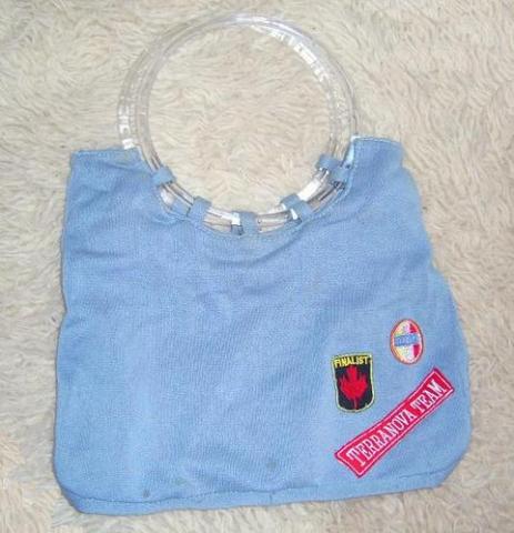 Labai fainutė, medžiaginė... su skaidrios plastmasės, apvaliomis rankenomis. Aukštis ~30cm (su rankenom 43cm) Plotis ~36cm