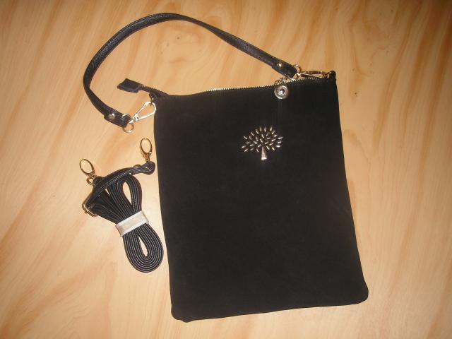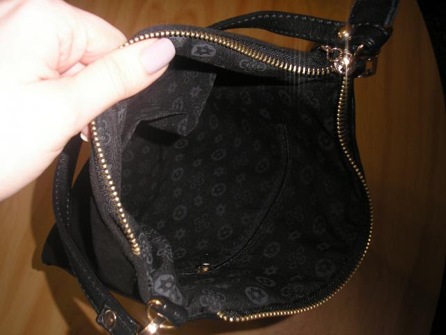Nauja, minkštos, zomšos ir presuotos odos rankinė. Yra trumpa ir ilga rankena, Užsisega ant užtrauktuko, Juodos spalvos, komplekte medžiaginis maišelis. +5lt siuntimas neskubus, +7lt skubus siuntimas.
