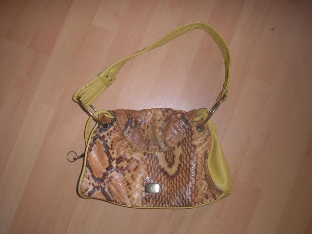 Nešiota dirbtinės odos rankinė, Geltonos spalvos su gyvatės imitacija ilgis apie 37 cm , aukštis apie 25 cm , plotis apie 15 cm +5lt siuntimas neskubus, +7lt skubus siuntimas.