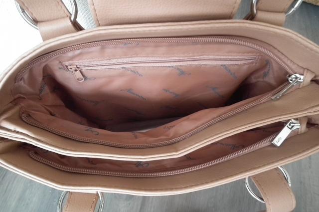 Rankinės išmatavimai: 25x30, šonas 8 cm. Du atskiri skyriai su užtrauktukais. Viduje kišenėlė, t.p. kišenėlė telefonui. Be defektų. Kampai nenutrinti, rankinė mažai naudota. Spalva rusva, lyg kreminė. Sudėtis dirbtinė oda Spalva ruda/rusva