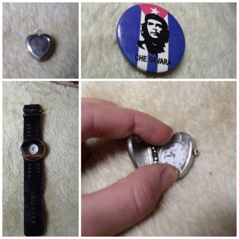 zenkliukas kaip naujas , nesiojamas laikdis, ji galima ir ant grandineles pasikabinti reikia naujos betareikos , rankinis laikrodis - yra iskiles pats laikrodis , dirzlija truksta uzsegiklio.