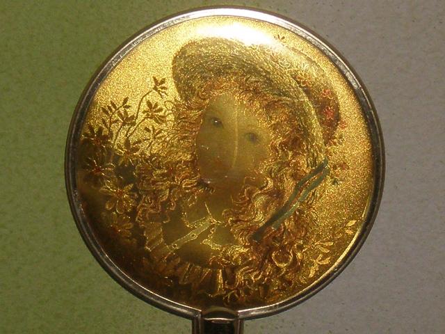 Rankinis veidrodelis su gale esanciu graziu merginos atvaizdu