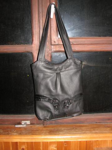 naujas odinis rankinukas. Juodos spalvos ilgos rankenos. ilgis 38 cm plotis 31cm