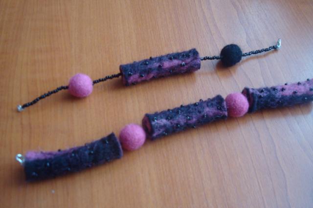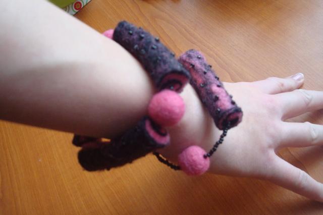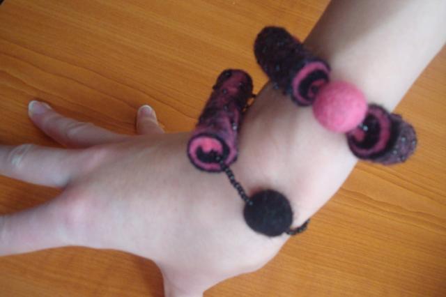 Rankų darbo apyrankės JUODA - ROŽINĖ