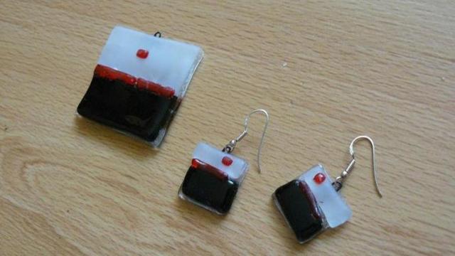 Rankų darbo auskarai ir pakabukas iš stiklo