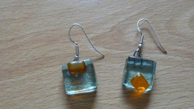 Rankų darbo auskarai iš stiklo