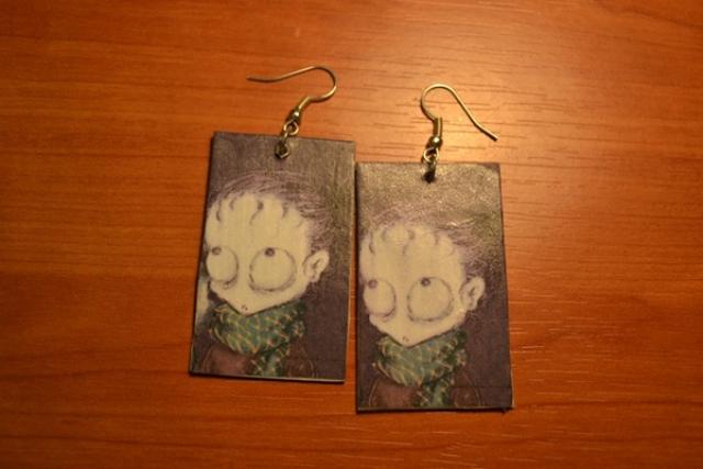 dekupažiniai rankų darbo auskarai. pagrindas- kartonas.