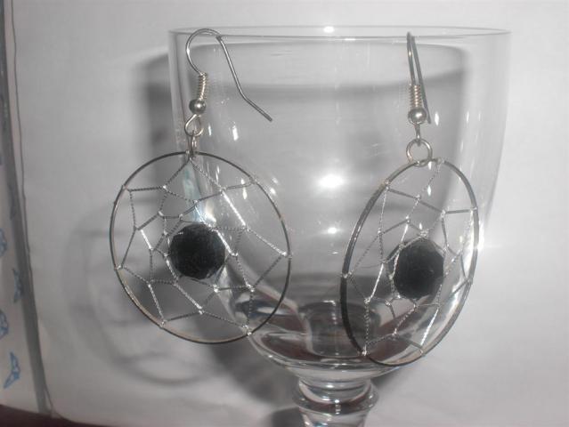 Rankų darbo auskarai, 3,5 cm. diametro "Sapnų gaudyklė"