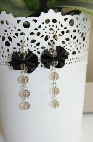 Rankų darbo auskarai. Dūminis kvarcas. Sidabriniai usegimai. Bendras ilgis 8 cm.