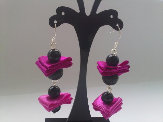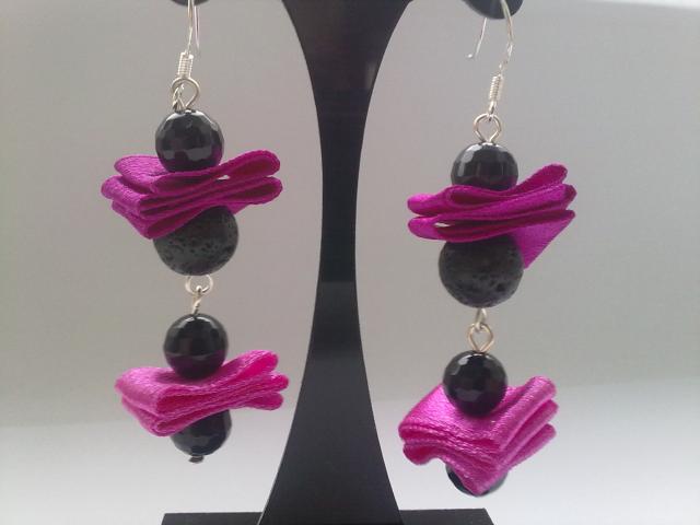 Lava burbuliukai ir juodas agatas, sidabruotos detalės, sidabriniai kabliukai.