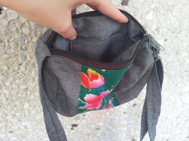 Nedidelis, ilga rankena, viduje kišenėlė.