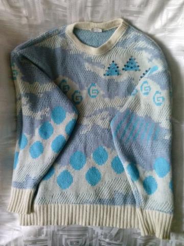 Rankų darbo, šiltas svarbiausia megstas ne iš '' kandančių '' siūlų, katik šviežiai iškeptas megztukas. Manau tiks ir kudai ir apkūniai, nes modelis numegstas taip kad , ant kūdos panelės gražiai kabėtų, o apkūnesnė dailiai taip pat atrodys tikrai tilpsite nes jis tamprus, elastingas :)