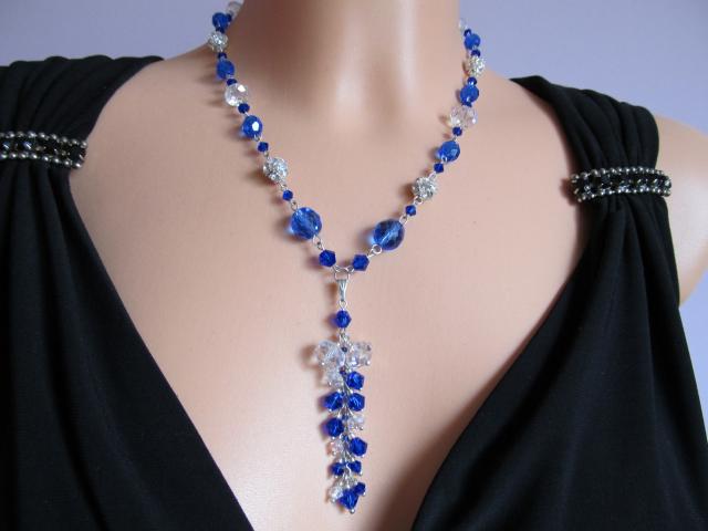 Rankų darbo nuostabiai žėrintis vėrinys iš čekiškų kristalų.ilgis-45cm+3,5cm grandinėlė.