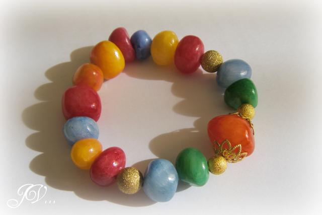 Žadeitas, paauksuotos detalės. Dydis reguliuojasi, nes apyrankė tempiasi. Mažiausias dydis 16cm. Gražiausia žiūrisi iki 20cm.
