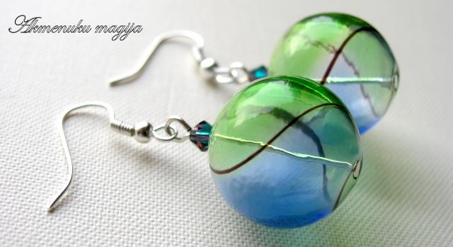 Rankų darbo pūsto stiklo auskariukai 17lt