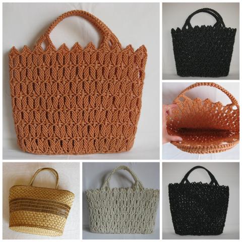 Rankų darbo rankinės/krepšeliai. Kainos įvairios. Juoda, stambesnio pynimo PARDUOTA.