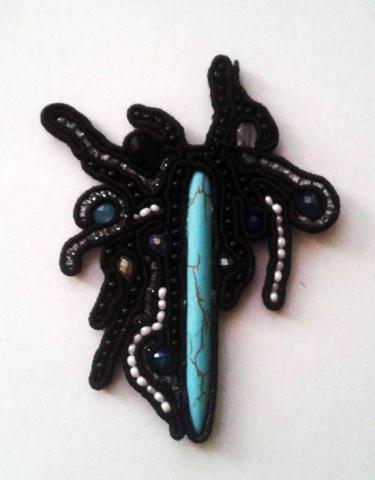 Rankų darbo sagė. Karoliukai stikliniai, turkis. Dydis 60x 70mm. Siunčiu į kitus miestus.