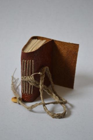 rankų darbo užrašinė, su natūralios odos viršeliu.