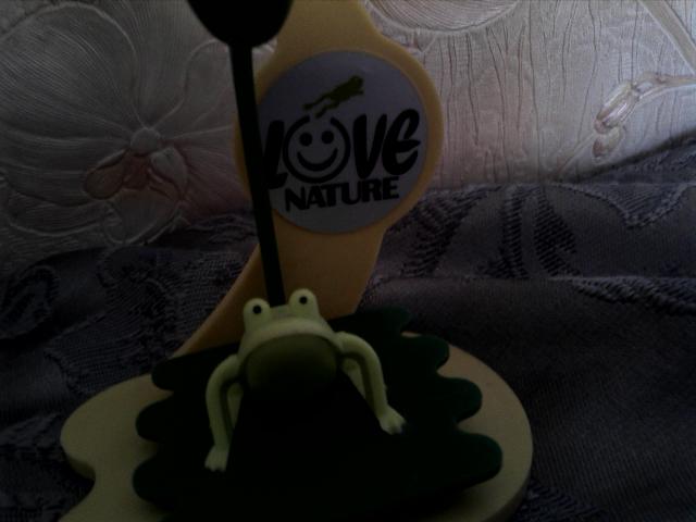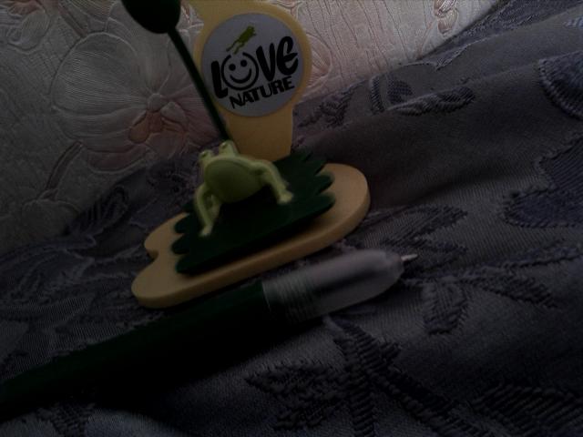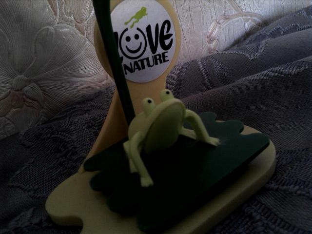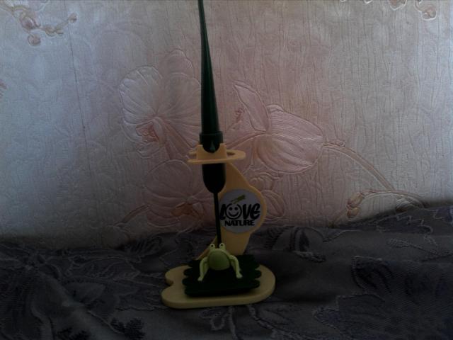 Juodos spalvos rašiklis su stovu. Labai patogu laikyti ir naudoti. : ) Papūtus rašiklis su varlyte ir varlytės burna juda. : )