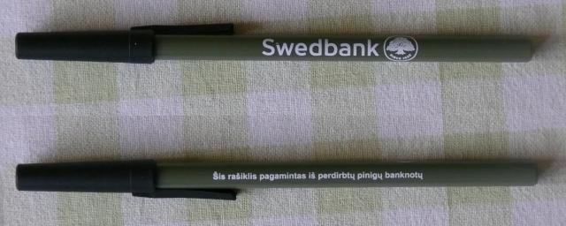 Rašiklis pagamintas iš perdirbtų pinigų banknotų.