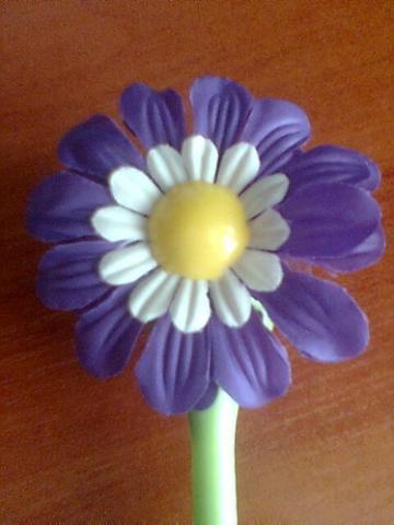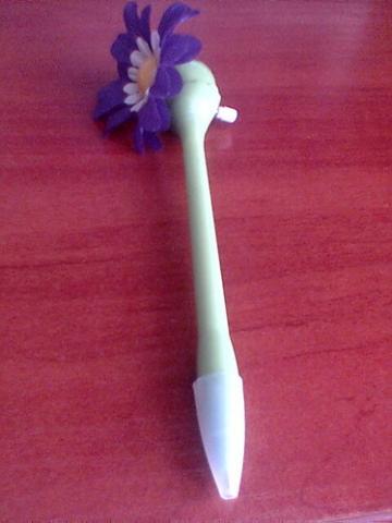 Rašiklis kurio viršuje yra gelė kuri sukasi..