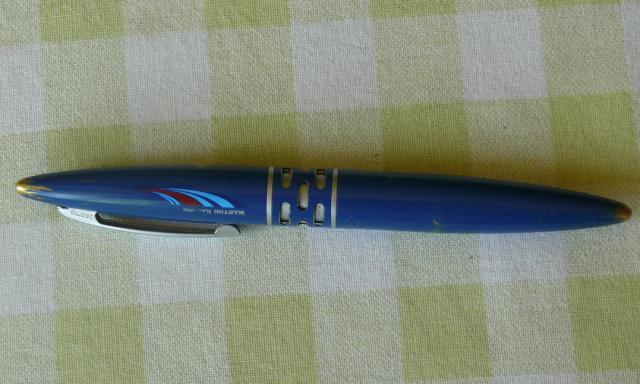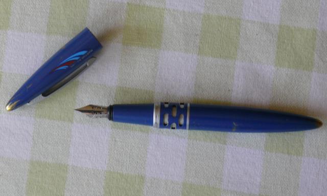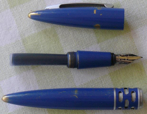 Garsios firmos prestižinis rašalinis rašiklis. Gerai rašantis. Daug naudotas, veikiantis. Gerai matosi natūralus dažų nusitrynimas.