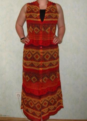 Ilga raštuota suknelė. Susagstoma. Peršviečama. Spalvos daugmaž atitinka nuotrauką.