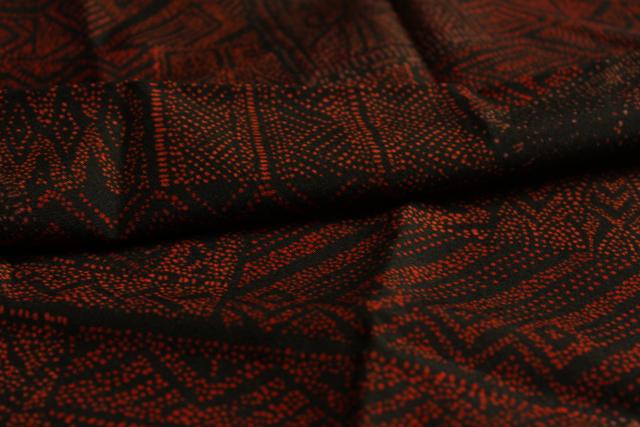 juoda raudona, su indeniskais rastais medžiaga. Raudumo realiai truouti maziau nei atrodo fotkej. Ismatavimai - 104 x 108
