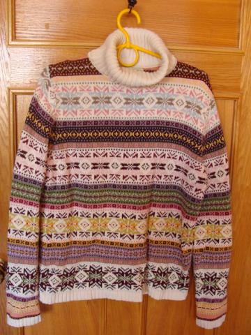 išties labai gražus ir senas megztinis,tačiau atsibodęs ir nebenešiojamas.:) su aukštu kaklu,kurį galima užsilenkti kaip nuotraukoje.defektų nėra.