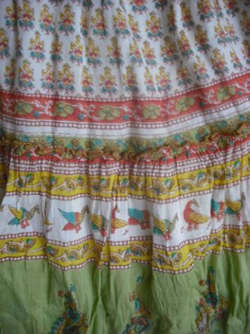 Medvilninis labai gražus raštuotas sijonas. Dydis s, bet tinka ir xs bei m, nes su guma laikosi ;)
