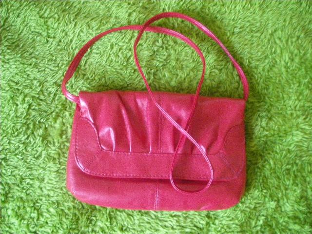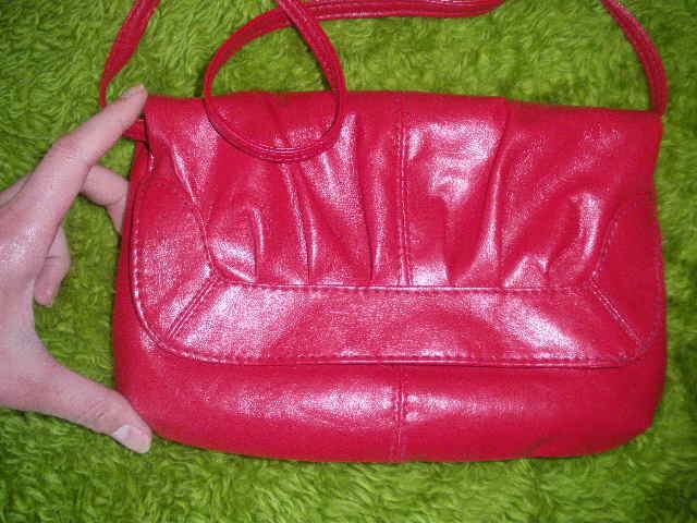 Romantiško stiliaus raudona delninukė su dirželiu. Dydis: 15 x 23 cm. 35Lt