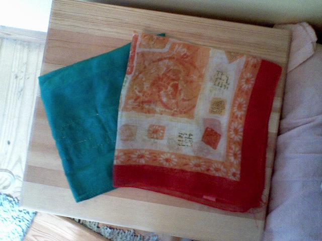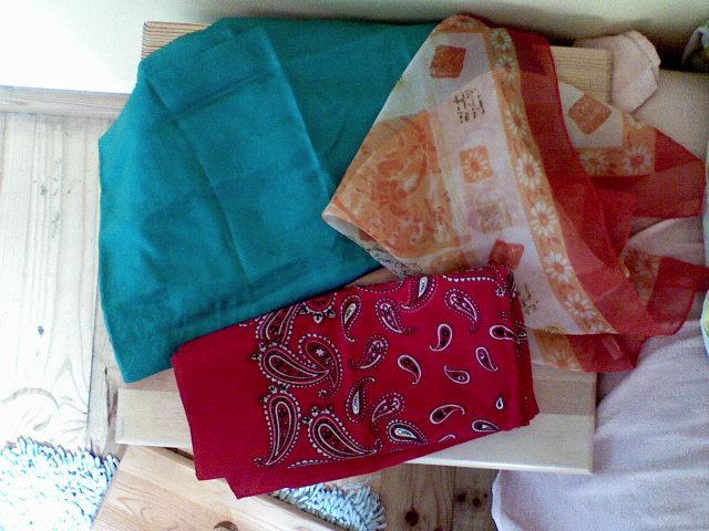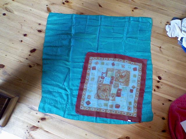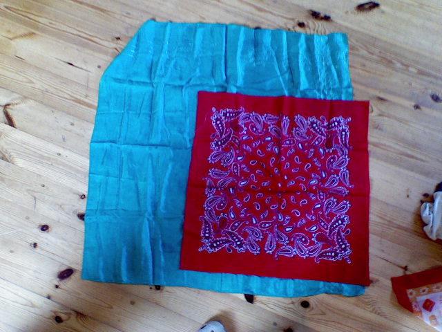 Liko tik viena (pirmoje, trečioje nuotraukose). Raudona su balta-juoda raštais: 52x54 (cm).