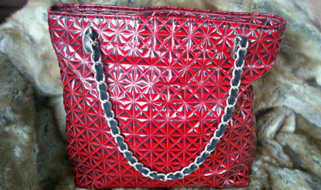 Raudona lakuota rankinė