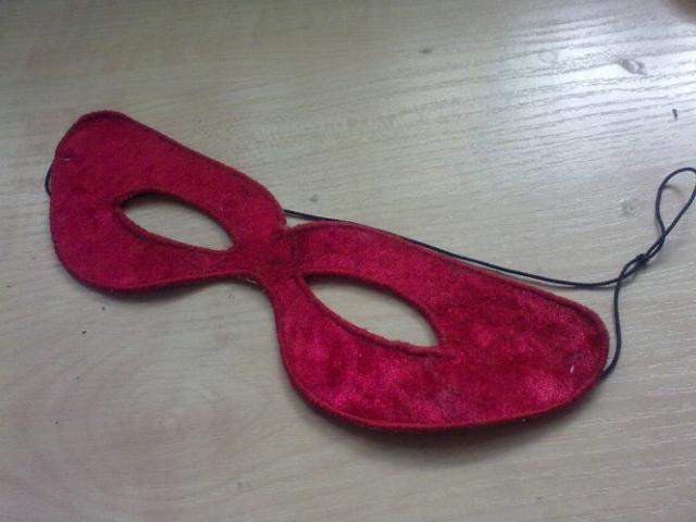 Raudona kaukė. Defektas tame,kad virvelę reikėtų pakeisti.